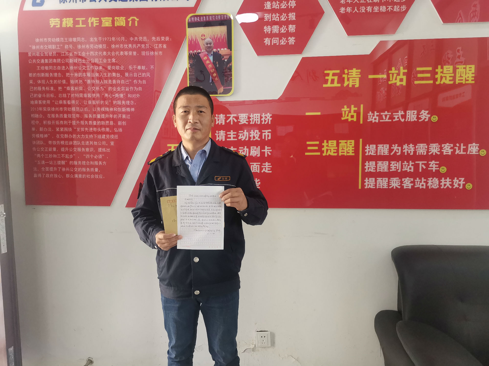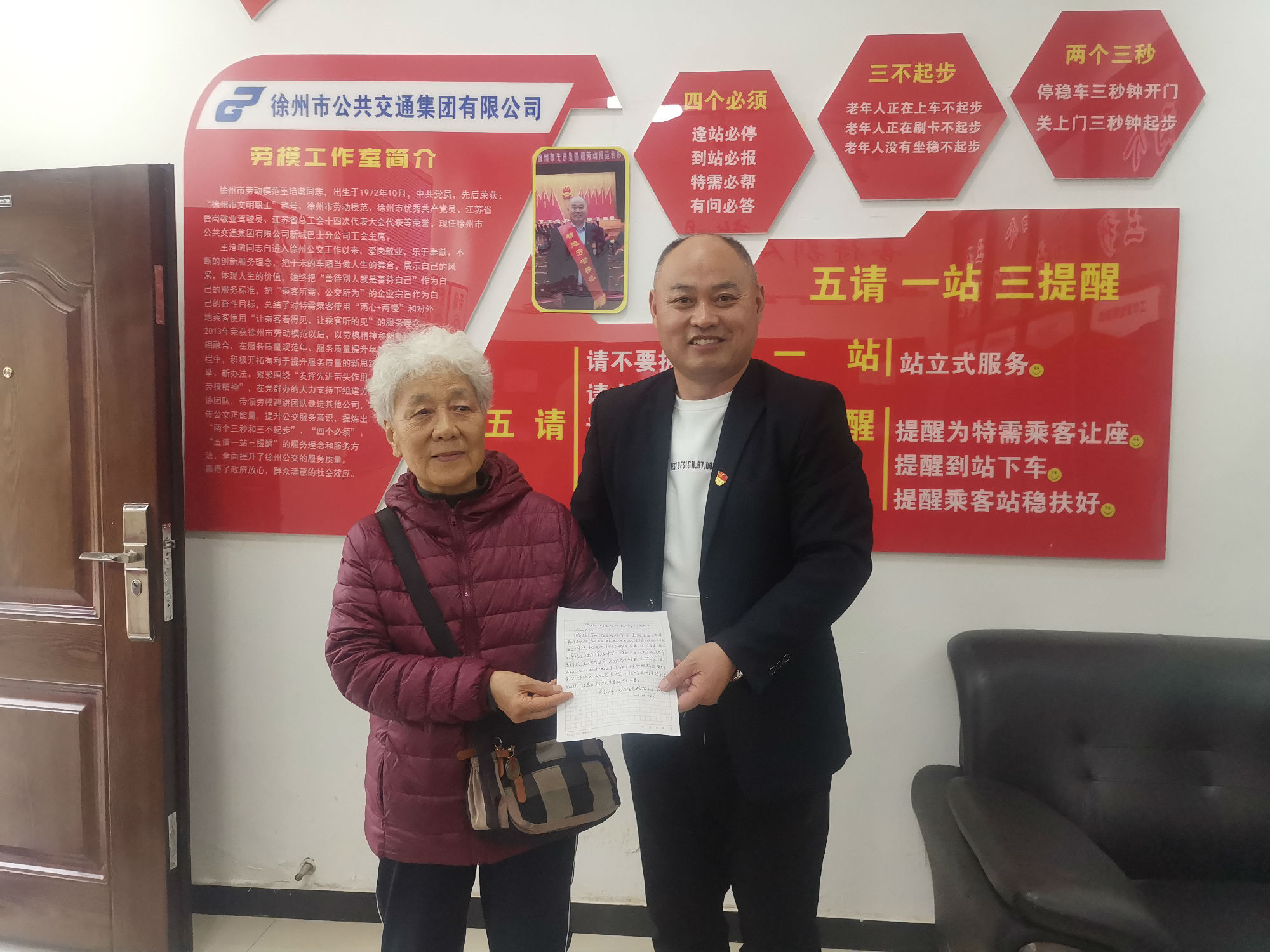10月28日下午,一位滿頭銀發(fā)的老人拿著一封親手寫的感謝信來到了徐州公交新城公司,老人說:“有一位駕駛員,經(jīng)常幫助我和老伴,但我不知道他叫什么,只知道他在46路2750號公交車。”經(jīng)核實,正是46路公交駕駛員郭開明師傅。