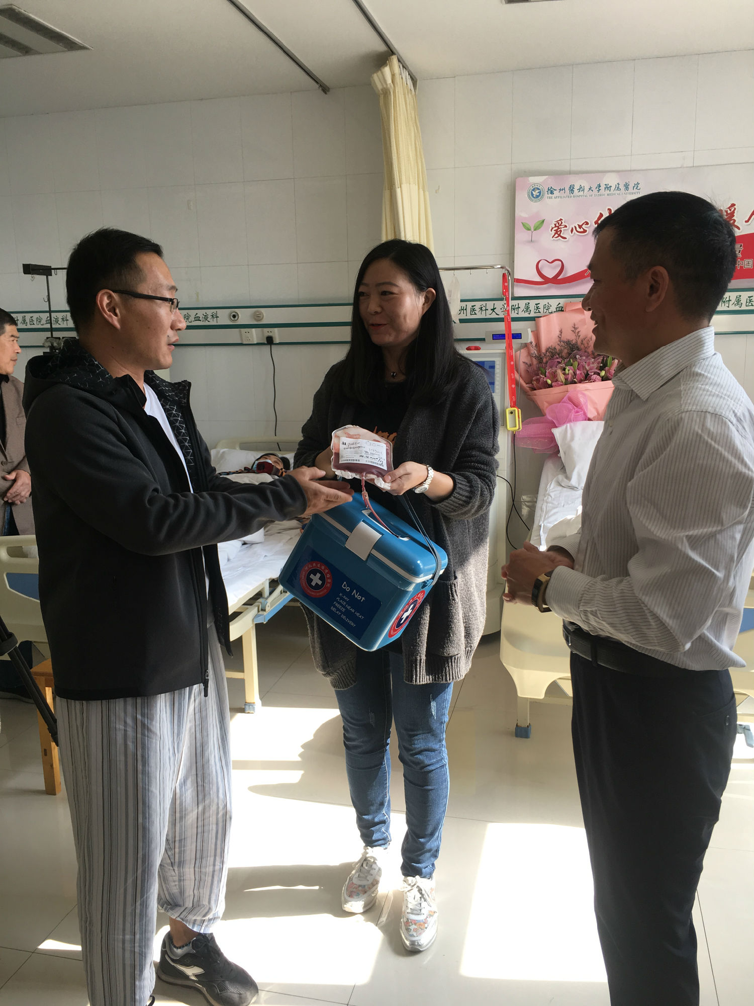打過8針造血干細(xì)胞動(dòng)員劑,10月30日上午開始采集?!袄习?,加油!”兒子在病床前給鄭剛鼓勁兒,雖然經(jīng)過了幾天動(dòng)員針的不適反應(yīng),此時(shí)鄭剛依舊很堅(jiān)定:“我比別人的打針反應(yīng)大,只要能救人一命,這都不算啥,我現(xiàn)在就希望孩子能盡快康復(fù)?!毙熘菔屑t十字會(huì)副會(huì)長李永衛(wèi)為鄭剛頒發(fā)了“捐獻(xiàn)造血干細(xì)胞榮譽(yù)證書”,為他點(diǎn)贊:“你是英雄!”患者家人在感謝信中寫道:“您這種高尚的壯舉給了我們?nèi)疑畹南M!?/span>