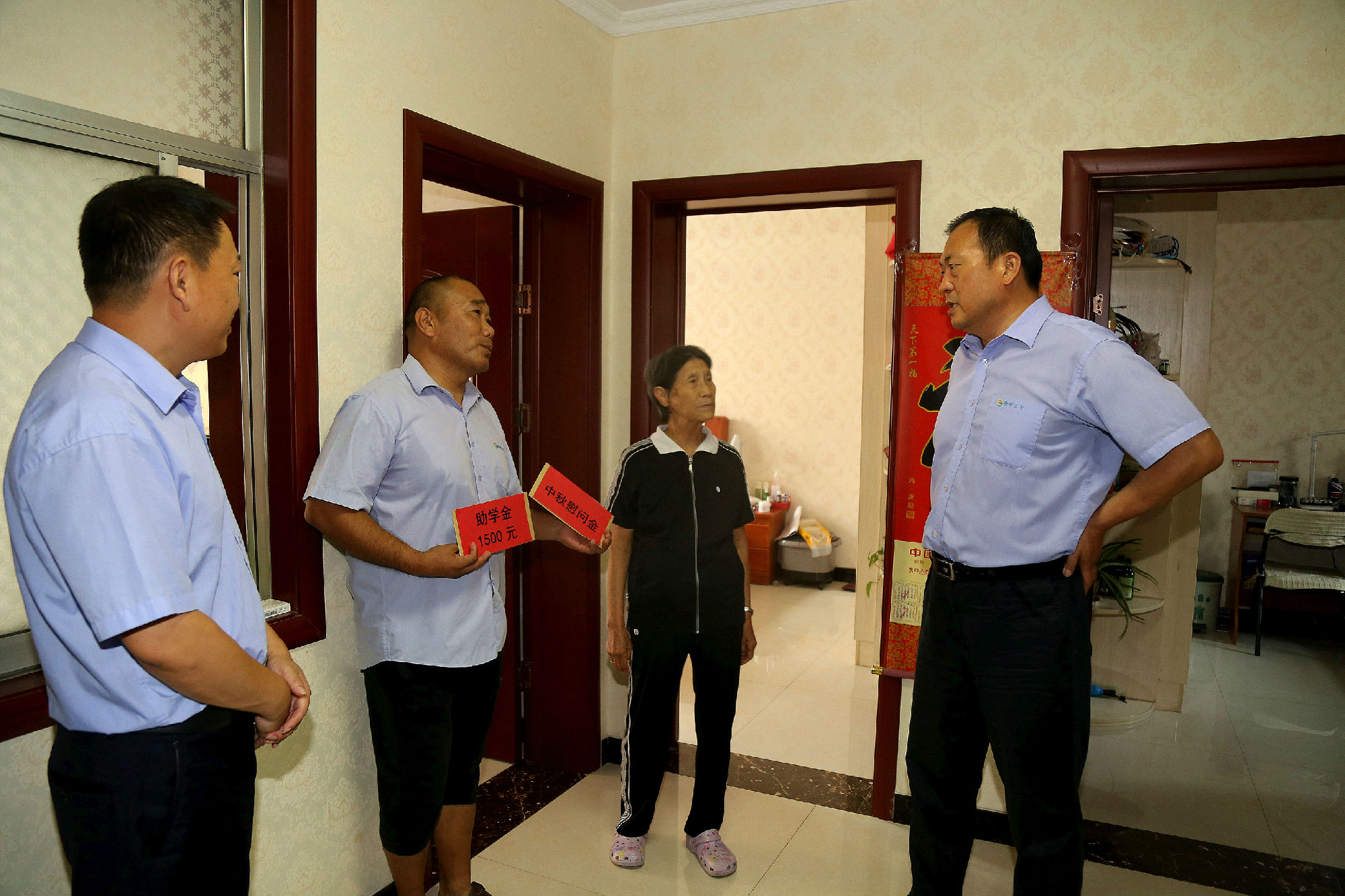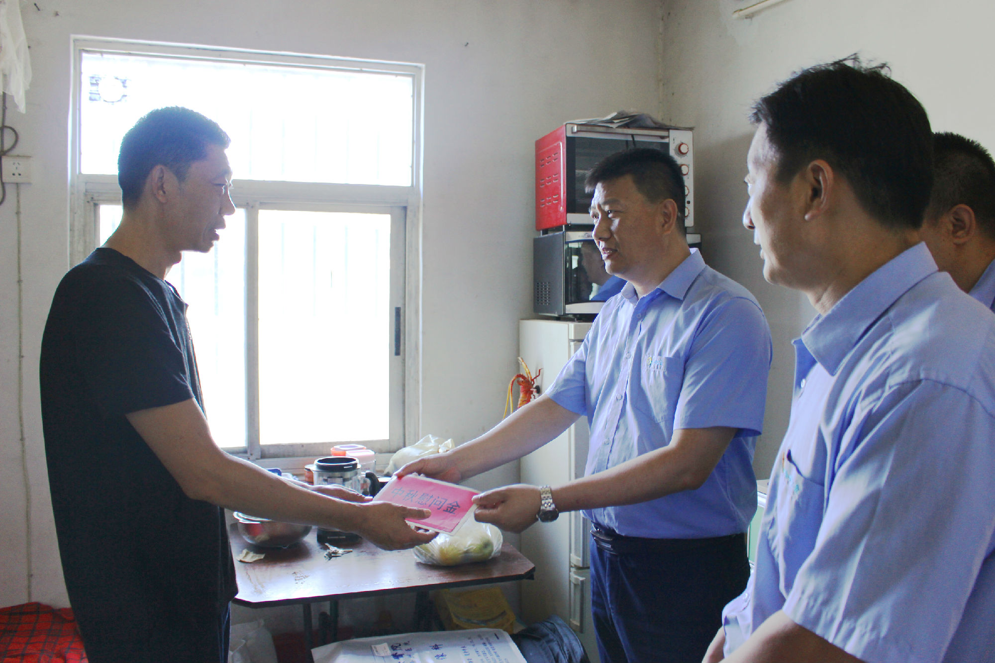 公司領導慰問組分赴困難職工家中、醫(yī)院,與他們親切交談,了解他們的工作、生活及家中成員狀況和困難情況,同時為他們送去了中秋節(jié)慰問金、助學金及中秋祝福。