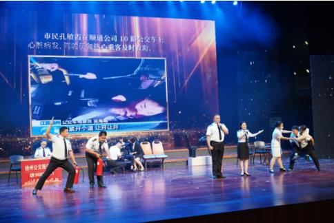 為激勵廣大黨員群眾以實際行動迎接黨的二十大勝利召開,8月10日下午,徐州公交集團(tuán)成功舉辦“展公交風(fēng)采 獻(xiàn)禮二十大”情景黨課。市交控集團(tuán)黨委委員、紀(jì)委書記胡濤,市交通運輸局宣傳教育處處長高夫健,徐州廣播電視傳媒集團(tuán)總編室主任劉建玲,市公交集團(tuán)外部董事,市交控集團(tuán)黨建工作部、群眾工作部部門領(lǐng)導(dǎo),以及公交集團(tuán)黨委班子成員、先進(jìn)勞模、職工代表共450余人出席并觀看演出。