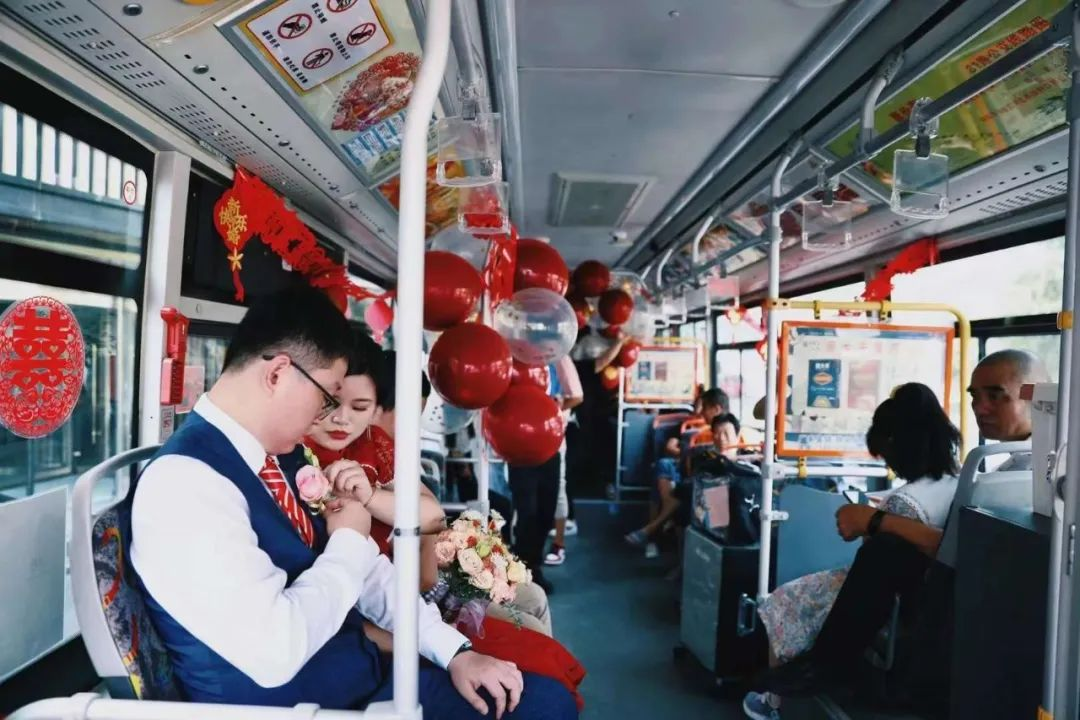 公交車變婚車!小夫妻“低碳”迎親詮釋別樣浪漫