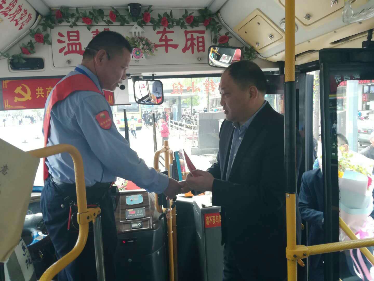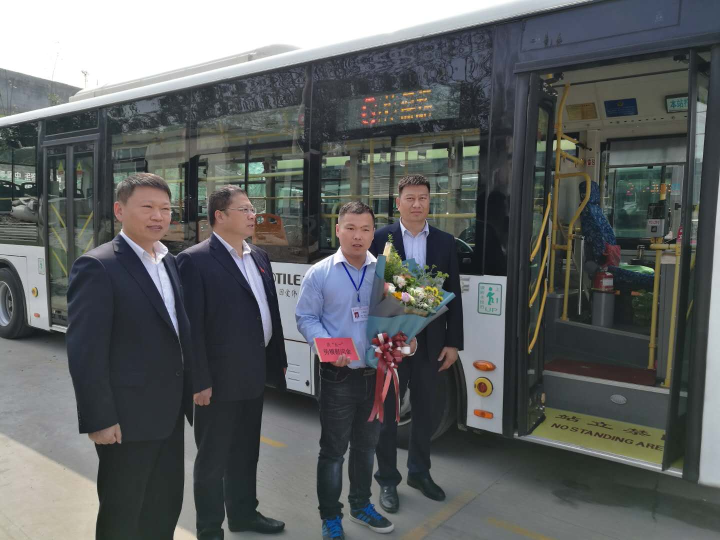 杜紅軍一行首先來到韓山終點(diǎn)站,剛行駛完一趟的市勞模、49路線駕駛員王博正利用休停時間打掃車輛,杜總走上前親切地與王博握手,并把一束嬌艷芬芳的鮮花和勞模慰問金送到他手中。
